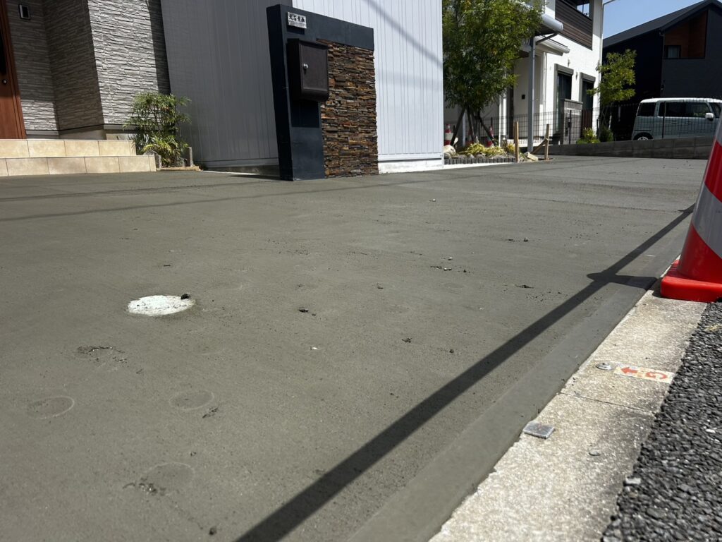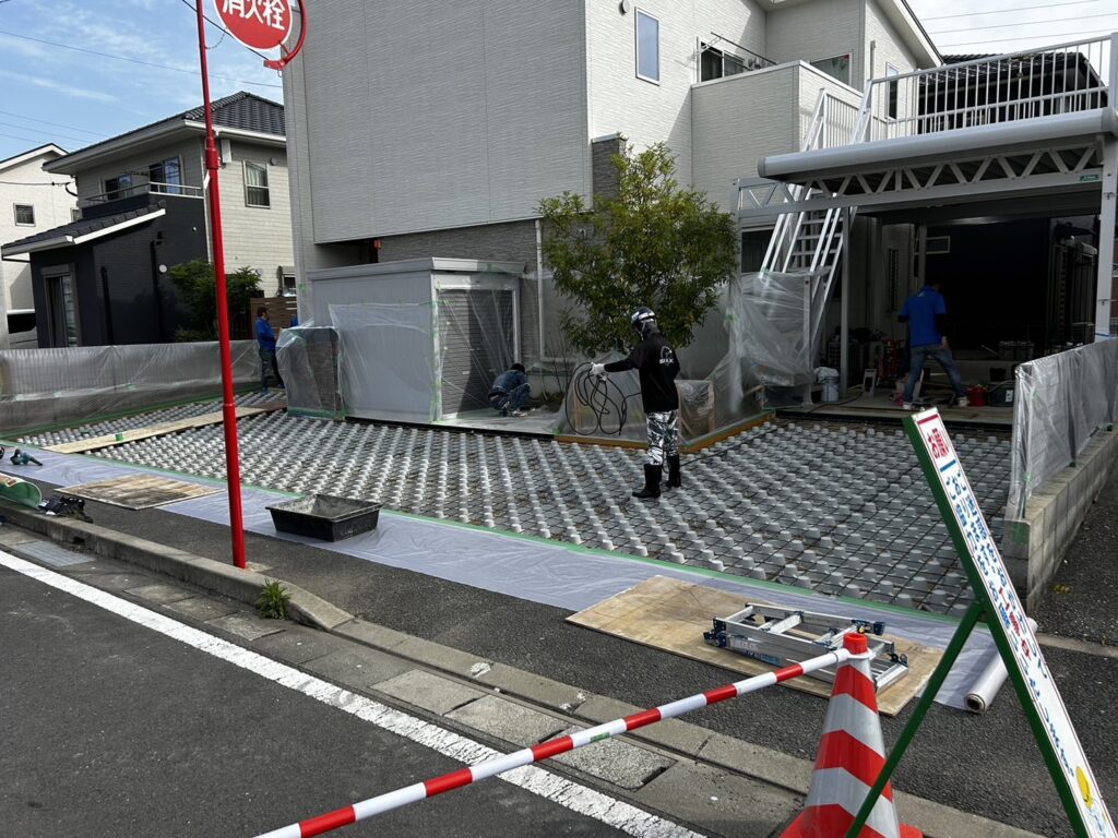 住宅の駐車場57㎡をDotconで施工して頂きました! 穴の中には砂利とゴールドクレスト🌲