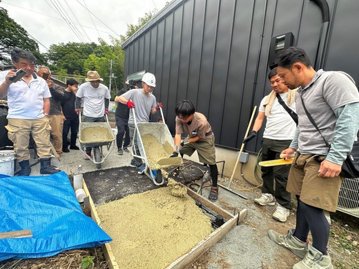 長岡生コンの施工見学会で施工した、 Dotcon×ナゲコン(着色)×オコシコン(着色)