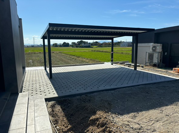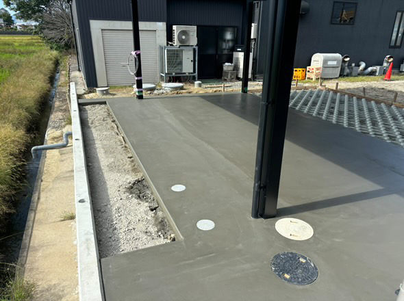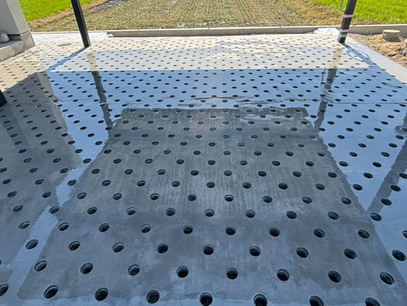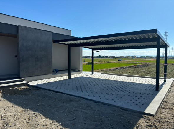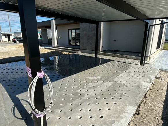 カーポート下の駐車場をDotconを施工☝️ Dotconは透水率100%なので、水勾配を取らなくても大丈夫!