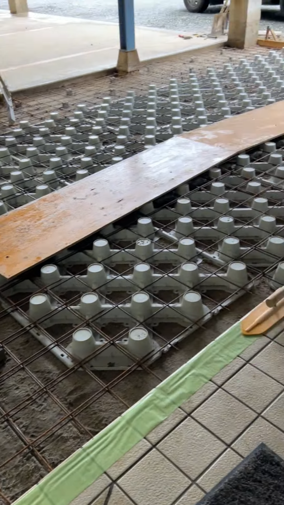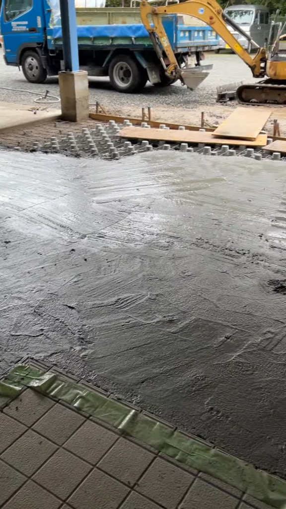カーポートの下にDotconを試験施工していただきました🚧 蓄光石を入れた仕上げが可愛く、お子様のおままごと会場になっていたとのこと😊