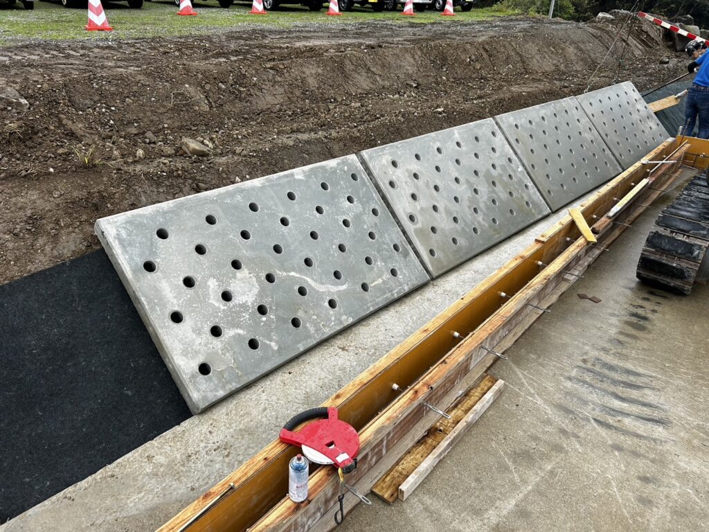 通常のコンクリートの法面はコンクリートで固めてしまうので緑化ができません。
