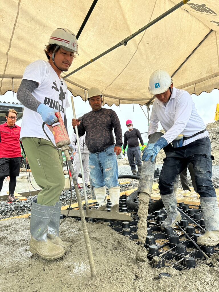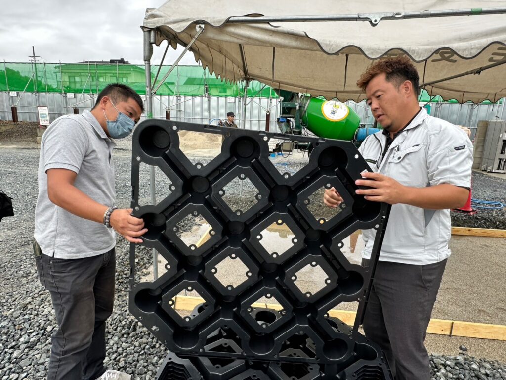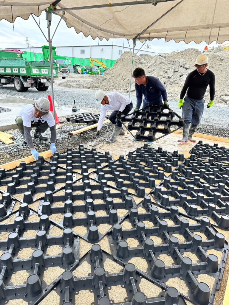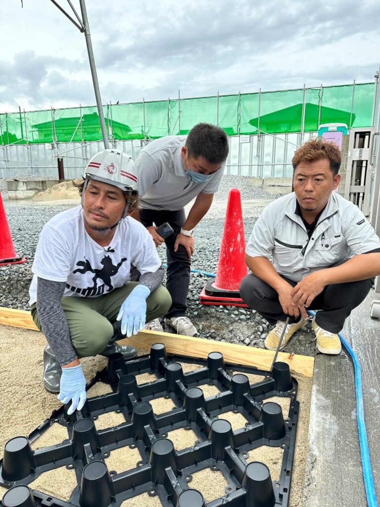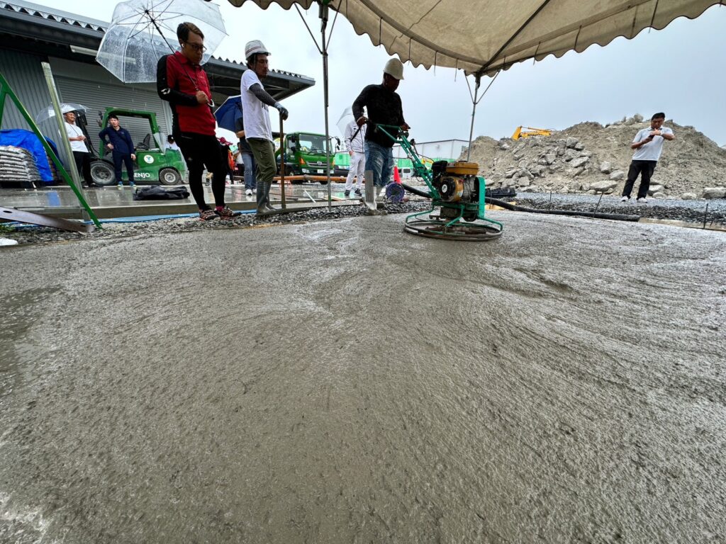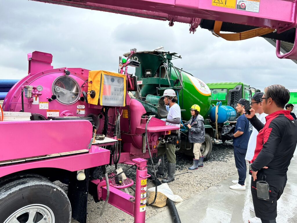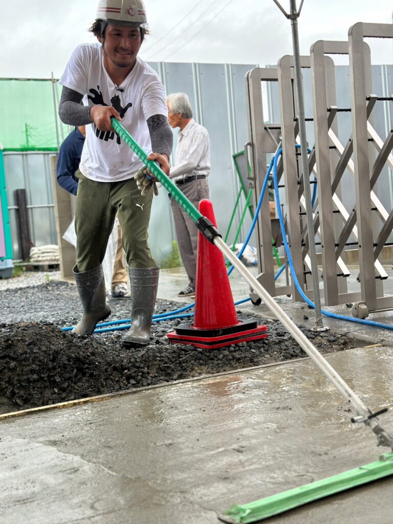 本日はあいにくの雨ではありましたが、株式会社毛受建材様にてドットコンとエコスルプラスの体験会を行いました!☔️
