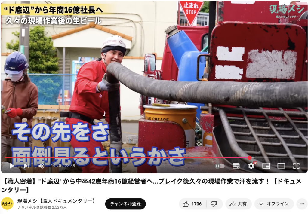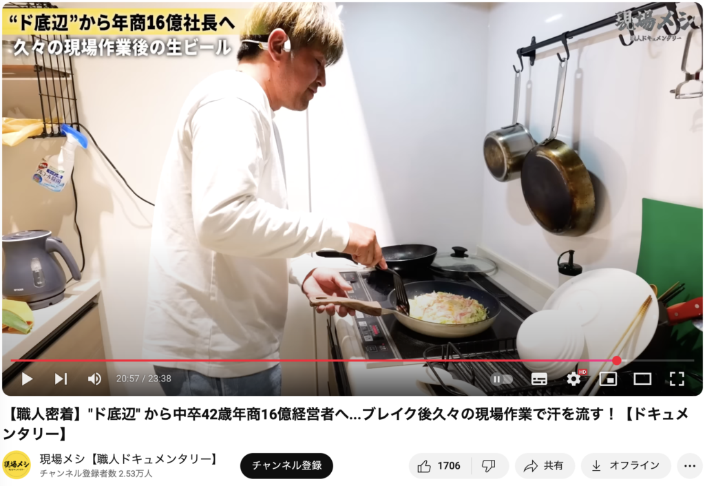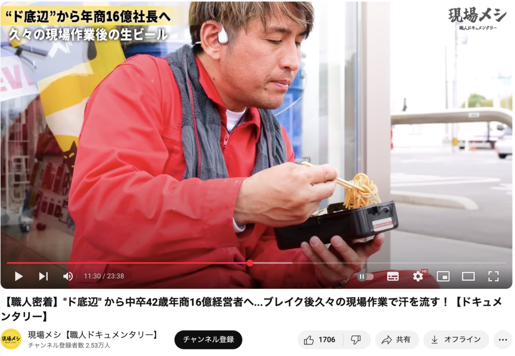 現場で働く職人たちに密着し、その一日の仕事ぶりと“終わりのメシ”にフォーカスする、ドキュメンタリー形式のYouTube番組です。