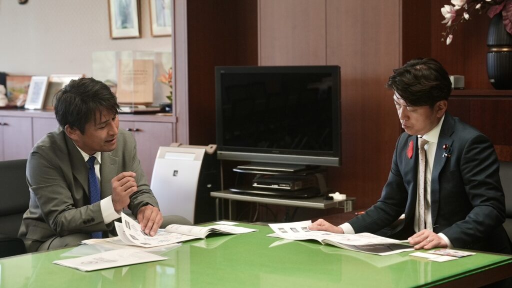 このたび、国土交通省大臣室にて、中野大臣に弊社の透水貯留浸透コンクリート「Dotcon(ドットコン)」についてプレゼンテーションを行いました。