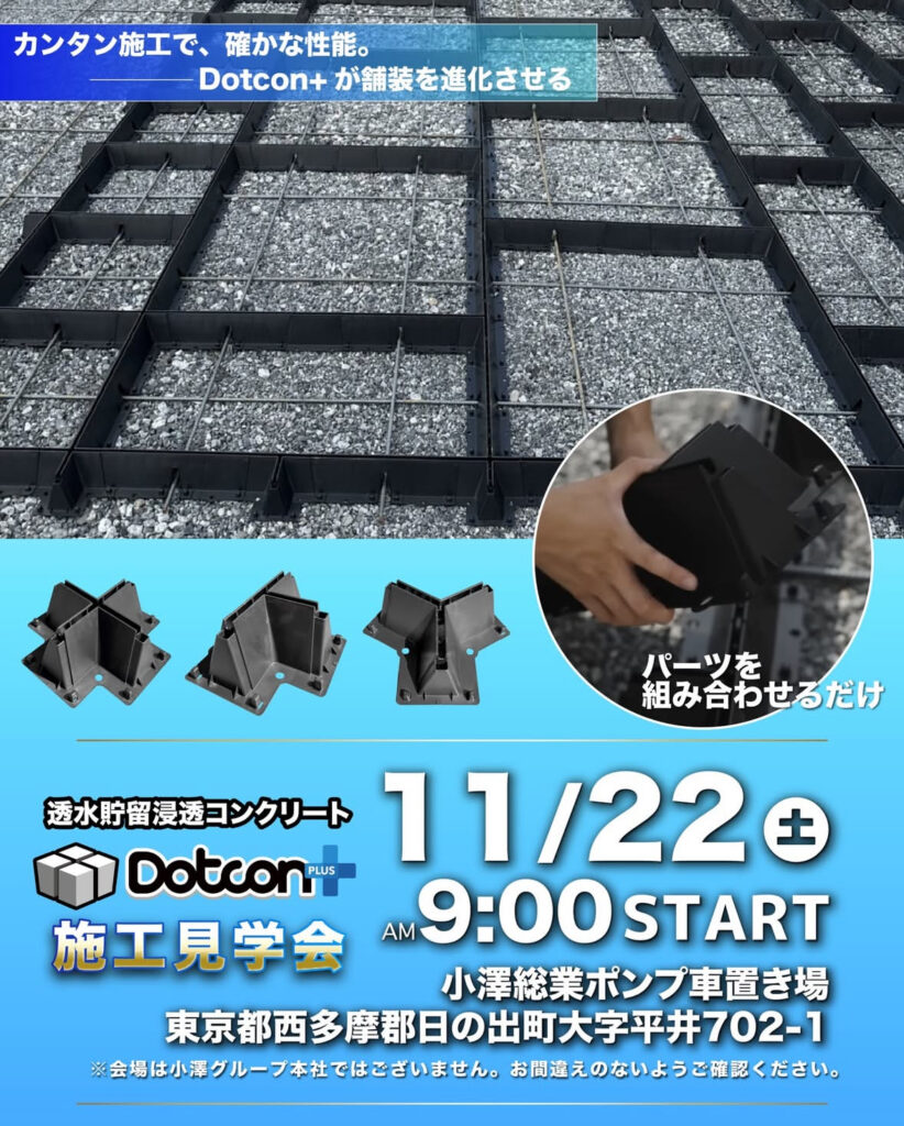 このたび、透水・貯留・浸透を兼ね備えた次世代型コンクリート舗装材「Dotcon PLUS(ドットコンプラス)」の