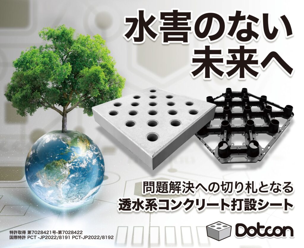 雨を大地に還す穴の開いたコンクリートを作りたい。なんでそう思ったか開発秘話はまた今度として、「穴」を点に見立てて「DOT」「CON」はconcreteの略。点コンクリートですね。そしてこれがいけなかったdotconって、.comと似てるな、よしURLもそれで取得しよう。そして誕生したwww.dotcon.comドットコンドットコム、似すぎというか一文字違い!.comって誰のものでもないけど世界中の人たちがたくさん使ってますからそれは確かに間違い検索ととれますよね・・・笑